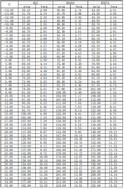 最合适(shi)的制冷剂:冷剂(ji)饱(bao)和(he)状态热力(li)性(xing)(xing)质(zhi)(zhi)表提供了不(bu)同制(zhi)冷剂(ji)的物(wu)性(xing)(xing)参数,可(ke)以(yi)(yi)帮助我们比(bi)较(jiao)不(bu)同制(zhi)冷剂(ji)的性(xing)(xing)能。对于低(di)温冷库,可(ke)以(yi)(yi)选择(ze)R507或R410A作为制(zhi)冷剂(ji),因为这两(liang)种制(zhi)冷剂(ji)在(zai)低(di)温环境(jing)下有较(jiao)好的制(zhi)冷性(xing)(xing)能。通过制(zhi)冷剂(ji)饱(bao)和(he)状态热力(li)性(xing)(xing)质(zhi)(zhi)表的数据,可(ke)以(yi)(yi)比(bi)较(jiao)不(bu)同制(zhi)冷剂(ji)的蒸(zheng)发温度、蒸(zheng)发潜热、比(bi)焓等参数,以(yi)(yi)选择(ze)最合适的制(zhi)冷剂(ji)。