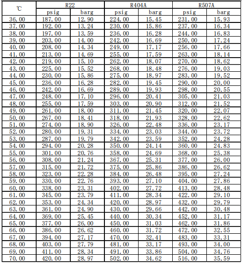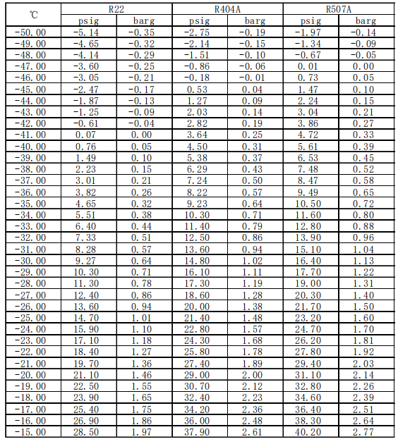 最合适(shi)的制冷剂:冷剂(ji)饱(bao)和(he)状态热力(li)性(xing)(xing)质(zhi)(zhi)表提供了不(bu)同制(zhi)冷剂(ji)的物(wu)性(xing)(xing)参数,可(ke)以(yi)(yi)帮助我们比(bi)较(jiao)不(bu)同制(zhi)冷剂(ji)的性(xing)(xing)能。对于低(di)温冷库,可(ke)以(yi)(yi)选择(ze)R507或R410A作为制(zhi)冷剂(ji),因为这两(liang)种制(zhi)冷剂(ji)在(zai)低(di)温环境(jing)下有较(jiao)好的制(zhi)冷性(xing)(xing)能。通过制(zhi)冷剂(ji)饱(bao)和(he)状态热力(li)性(xing)(xing)质(zhi)(zhi)表的数据,可(ke)以(yi)(yi)比(bi)较(jiao)不(bu)同制(zhi)冷剂(ji)的蒸(zheng)发温度、蒸(zheng)发潜热、比(bi)焓等参数,以(yi)(yi)选择(ze)最合适的制(zhi)冷剂(ji)。